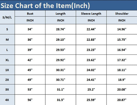 Size Chart of the Item(inch)