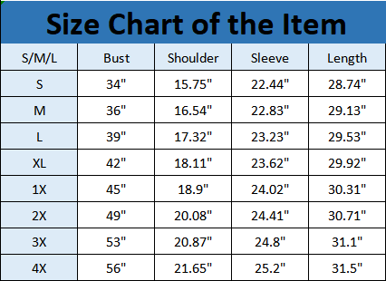 Product Details Sleeve Length: Long Sleeve Collar: Scoop Neck Color:�Blue Size: S, M, L, XL, 1X,2X,3X
