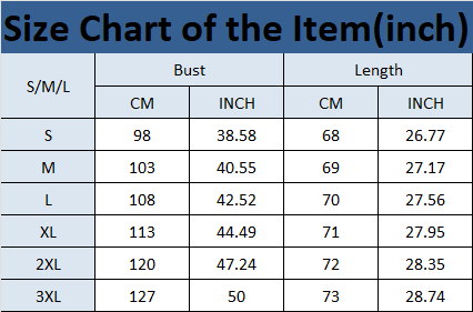Size Chart of the Item(inch)