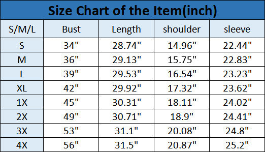 Product Details Sleeve Length: Long Sleeve Collar:?Scoop Neck Color: White Size:M,L,XL,1X,2X,3X