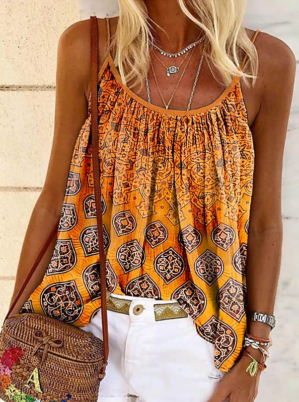 Gender:Women's, Style:Basic, Occasion:Weekend,Casual, Tops Type:Summer Tops,Tank Top, Neckline:Round Neck, Fabric:Polyester, Design:Print, Details:Without Lining, Sleeve Length:Sleeveless, Elasticity:Micro-elastic, Look After Me:Machine wash,Wet and Dry Cleaning,Washable, Top Length:Regular, Pattern:Graphic,
