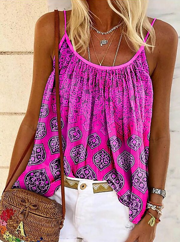 • Women's Summer Tops Tank Top Pink Blue Orange Graphic Print Sleeveless Casual Weekend Basic Round Neck Regular S